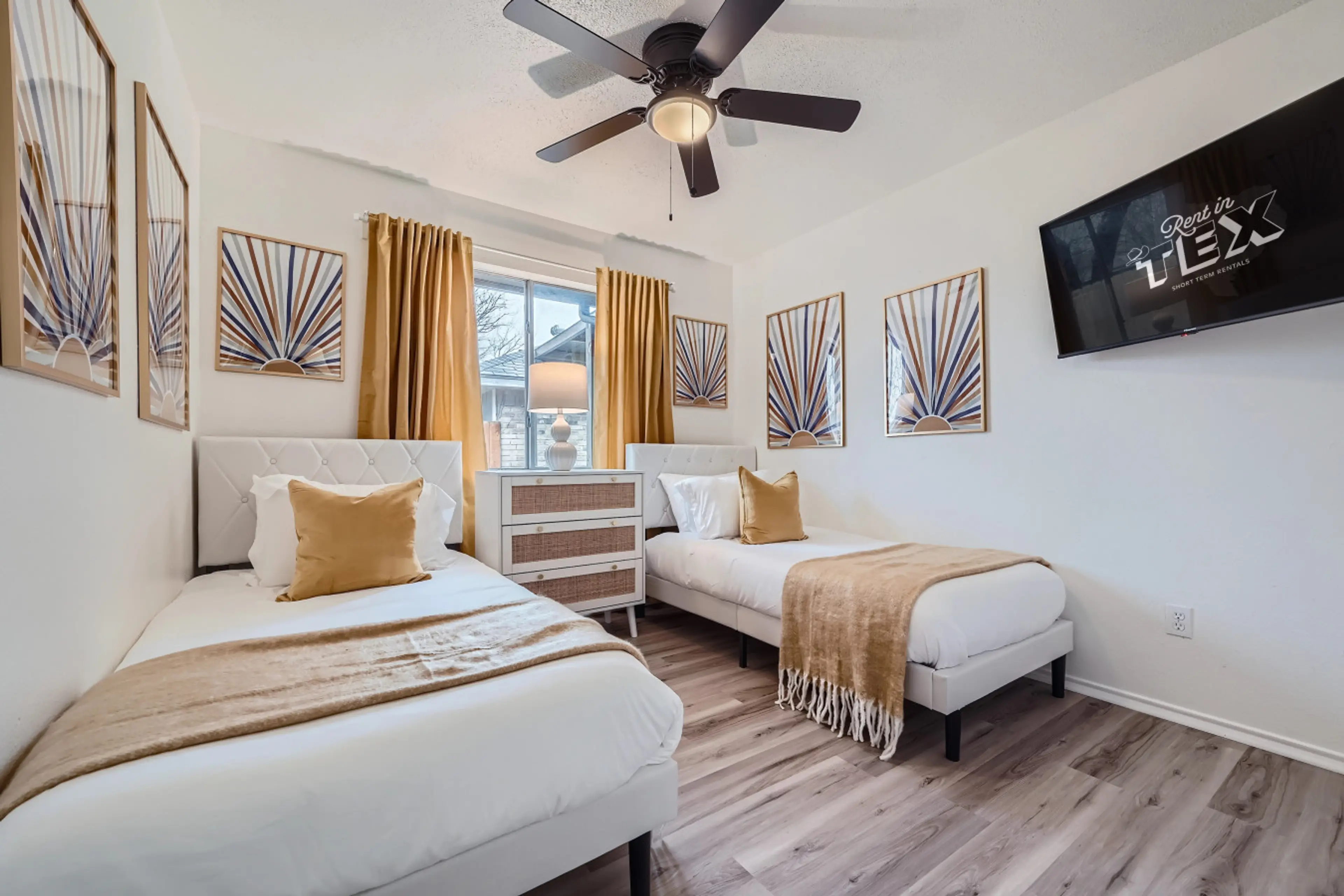 Single-level 4-bedroom home in Round Rock with fast Wi-Fi (609 Mbps), dedicated workspace, and free on-site parking. Includes a fully fenced backyard with furnished patio, exercise equipment, in-unit laundry, and a full kitchen, minutes from Kalahari, Round Rock Outlets, and IKEA. Living Areas ✓ TV...