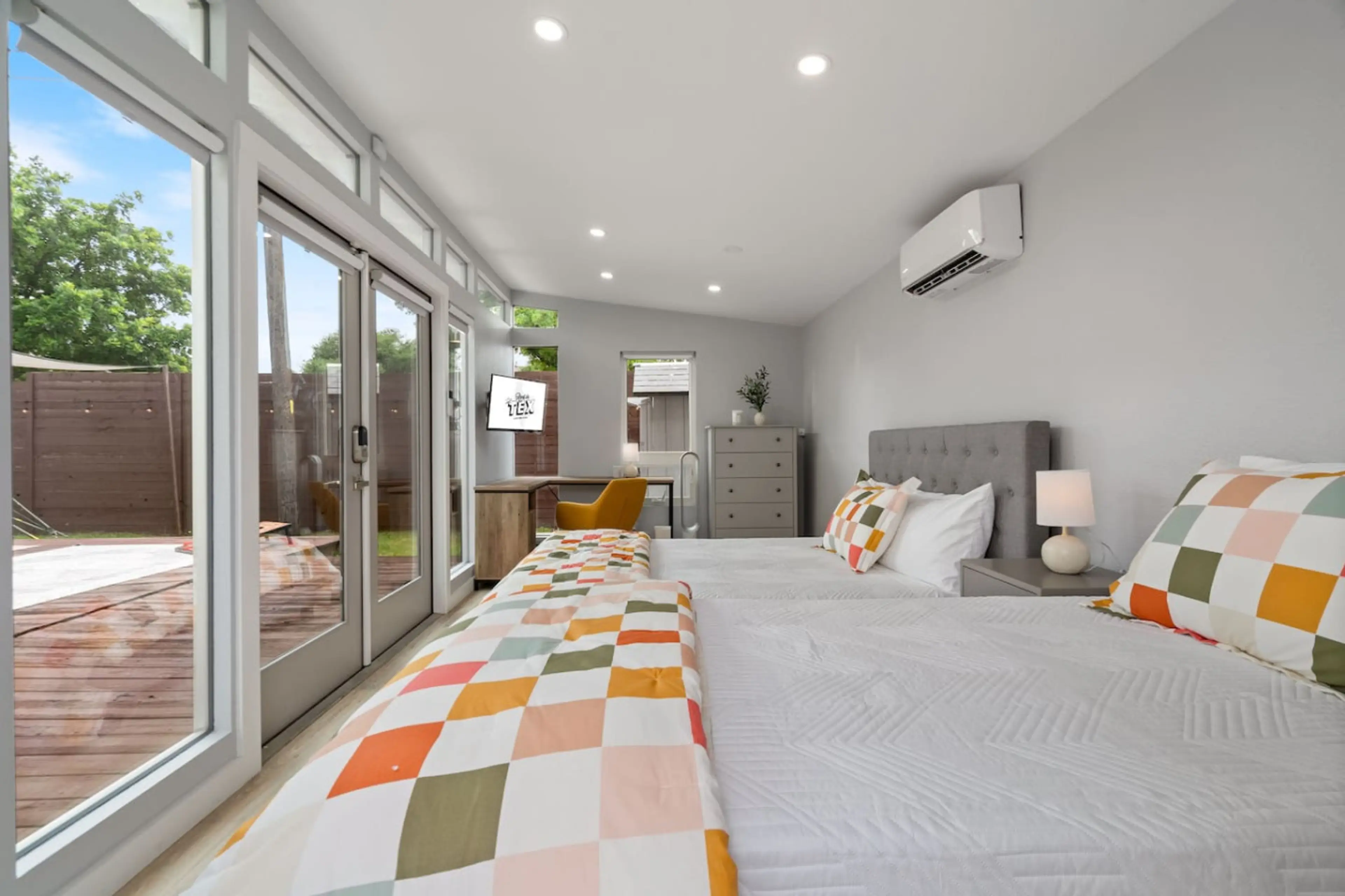 Colorful 3-bedroom retreat with a private casita featuring a private, fully fenced backyard and cowboy-style pool minutes from Austin. Includes a full kitchen, fast Wi-Fi, dedicated workspace, in-unit laundry, free parking, and flexible sleeping for group stays. ๐๏ธ Living Areas โ TV โ Board game...
