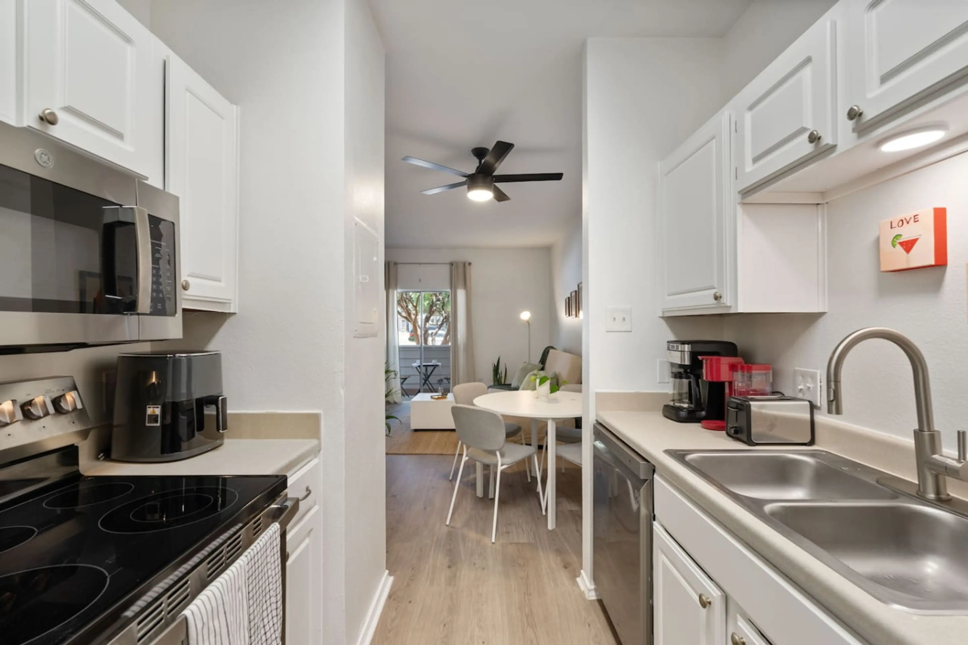 Bright 1-bedroom retreat near The Domain with fast Wi-Fi, free on-site parking, and access to a shared pool. Includes a full kitchen, dedicated workspace, private living room, and in-building laundry available at extra cost. ποΈ Living Areas β Private living room β TV β Board games β Ceiling fa...